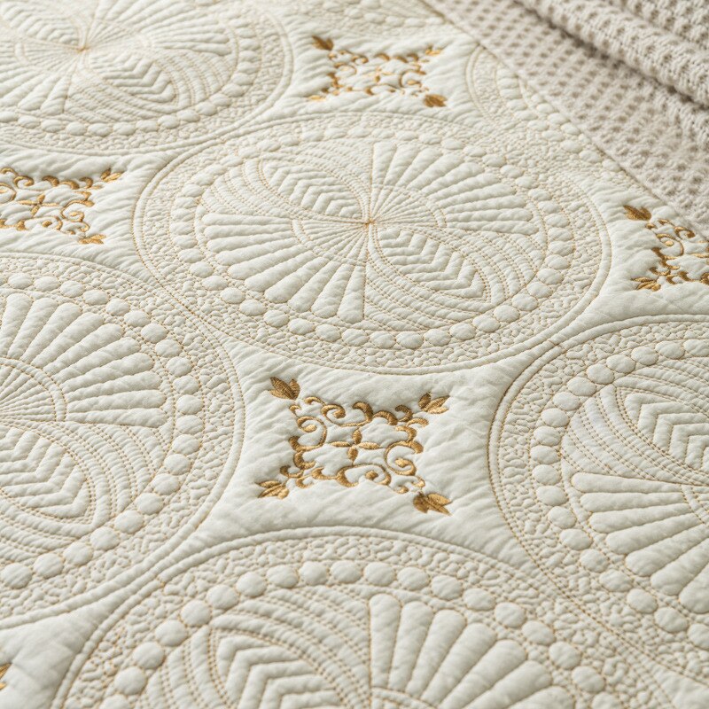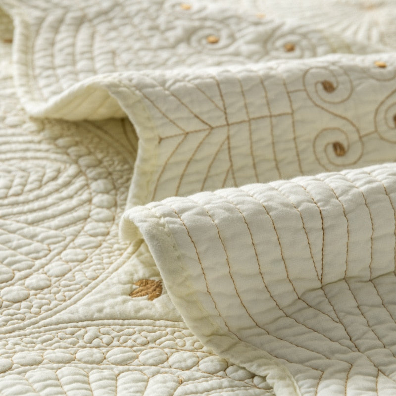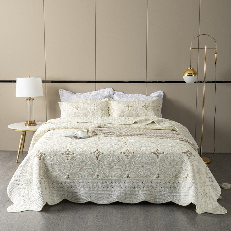 Premium Cream & Gold Embroidered Bedspreads Set - 3 Pieces