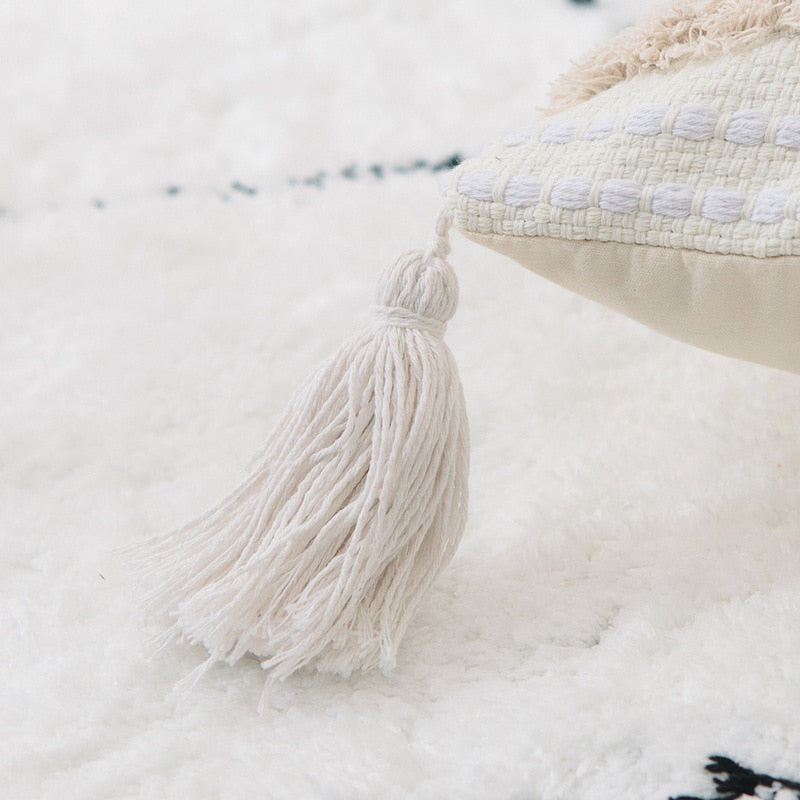 Moroccan Geometric Woven Cushion Cover With Tassels