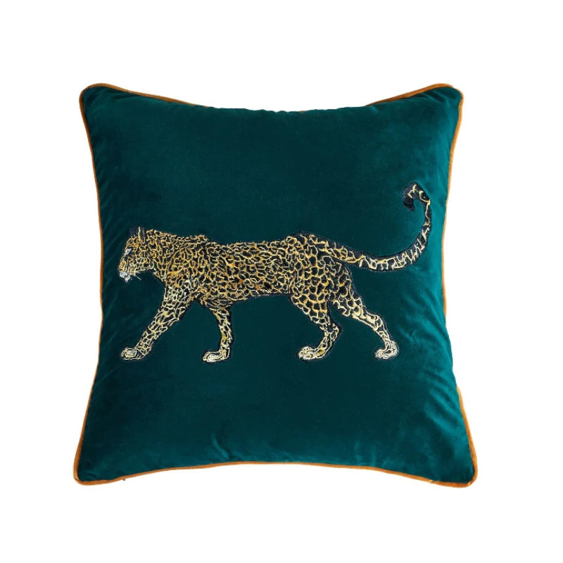 - Luxury velvet cushion covers with embroidered lepard and piping